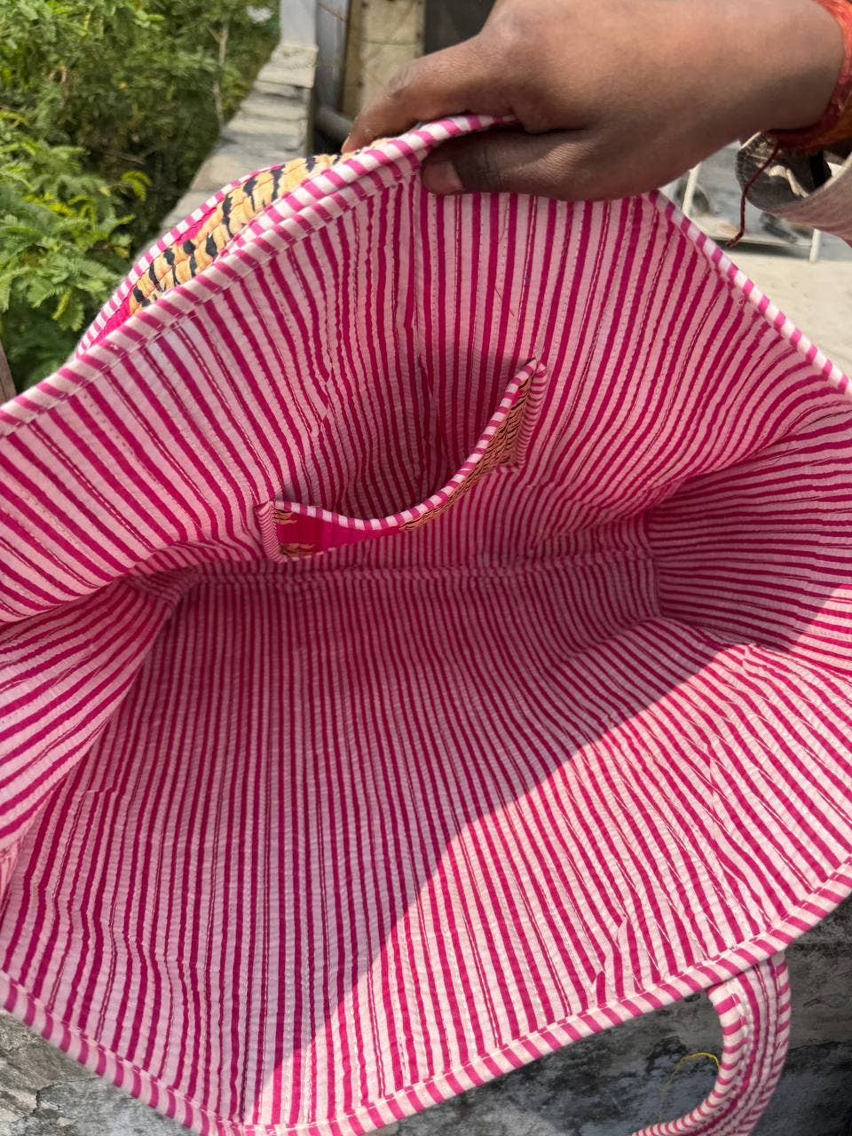 The Indian Screen Printed Cotton Quilted Women's Handbags from Rajasthan India. This handbag is completely Indian printed on good quality cotton.