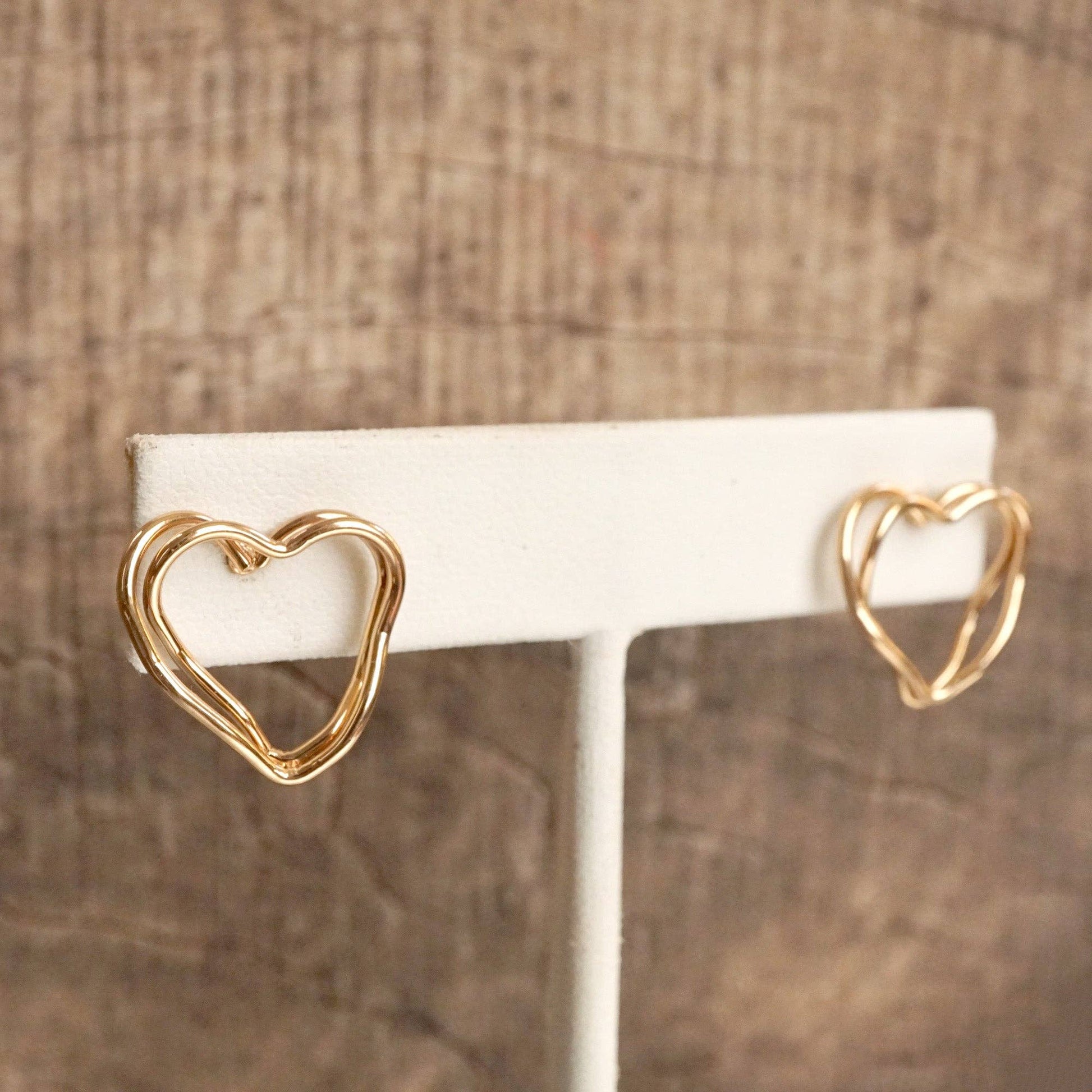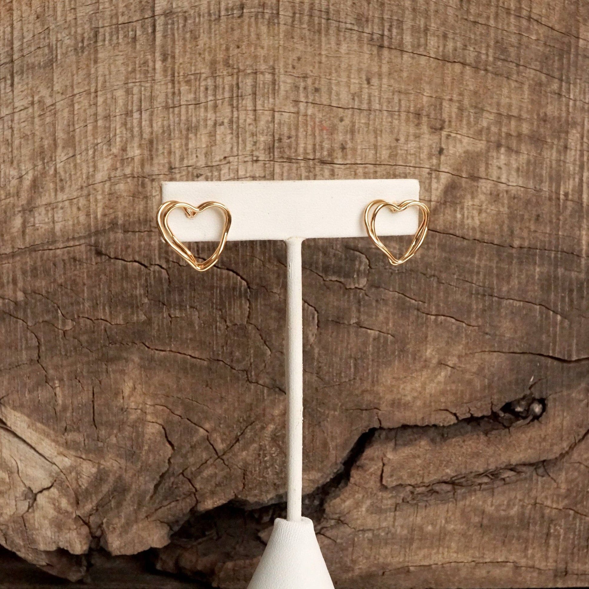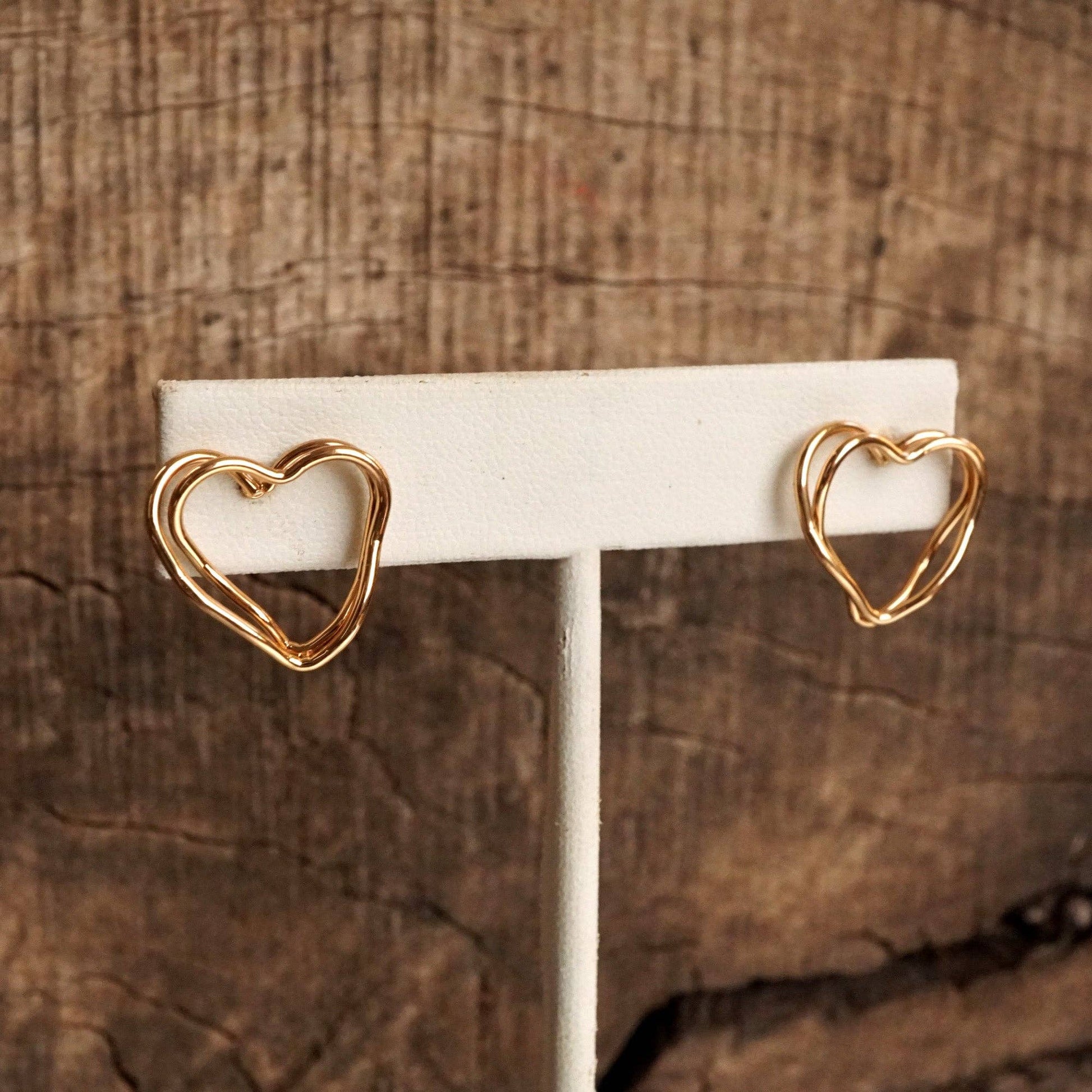 Wire-Inspired Heart Stud Earrings – Gold Tone