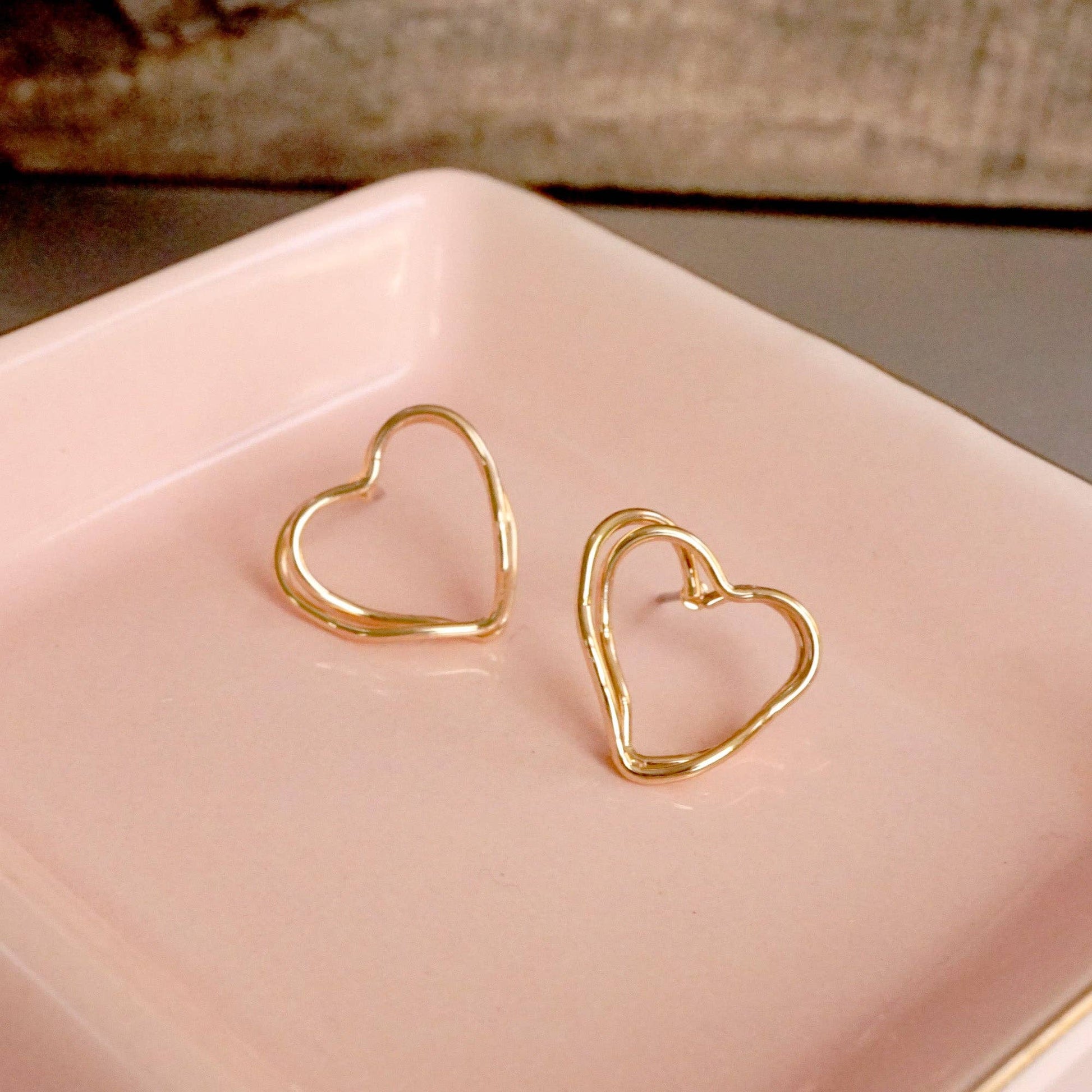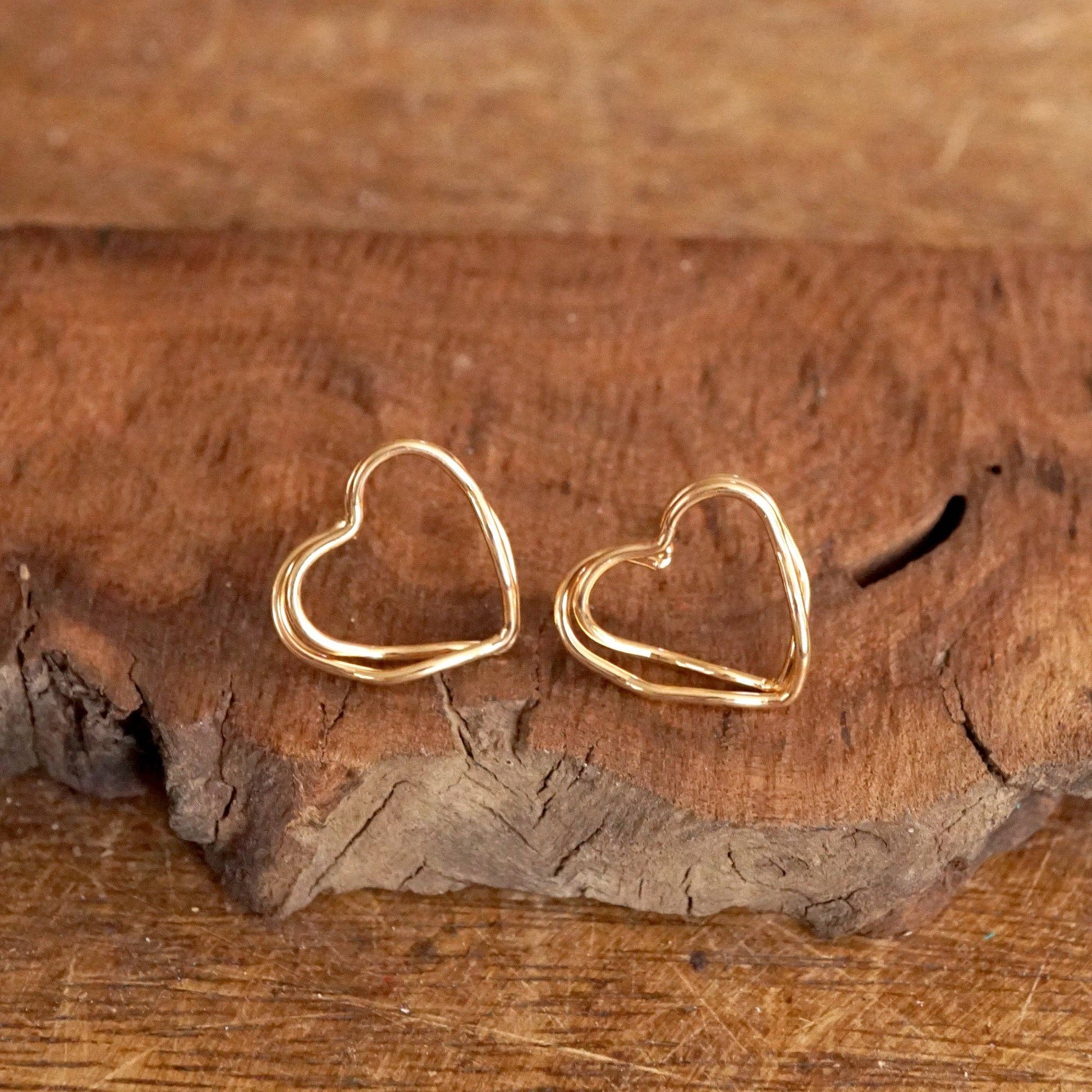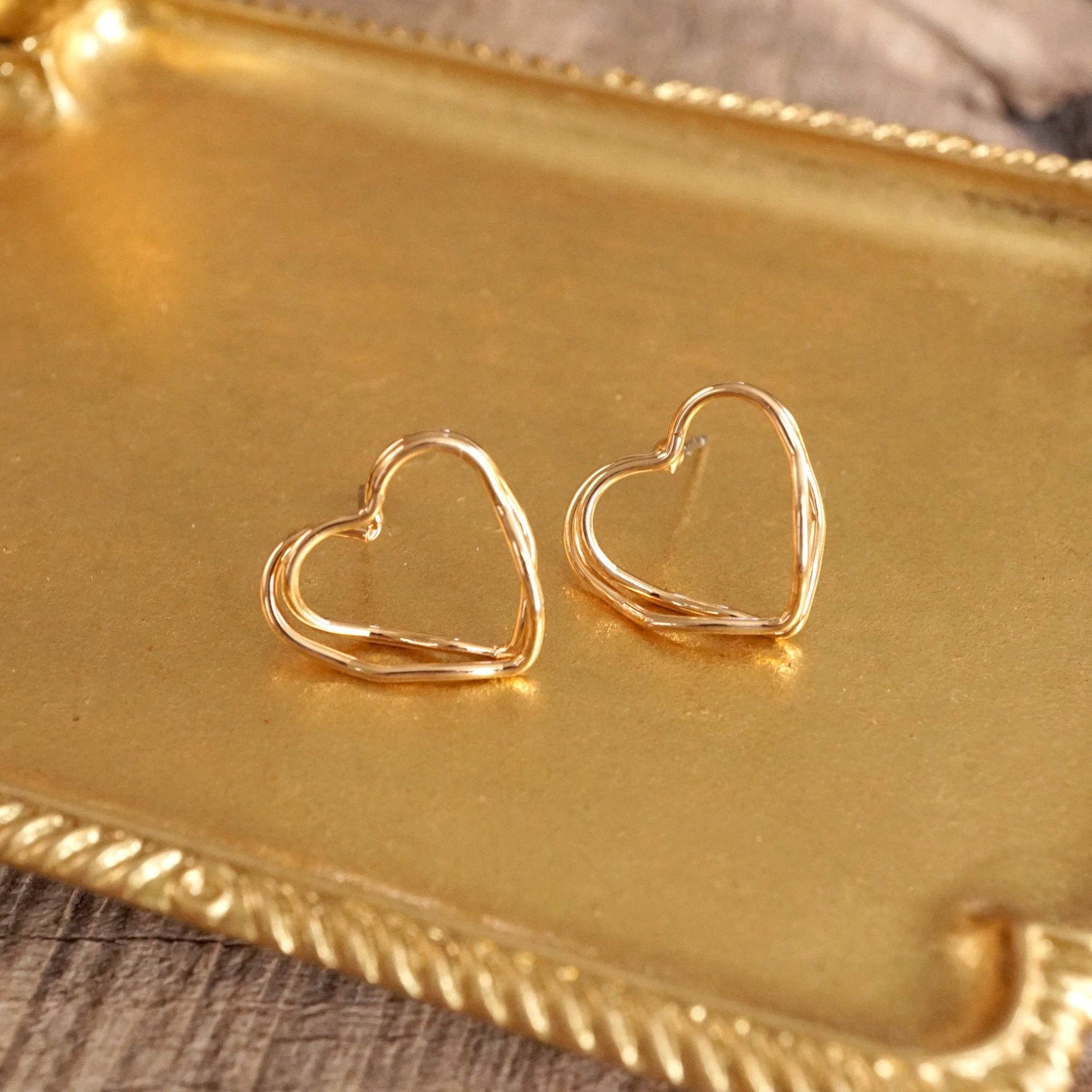 Wire-Inspired Heart Stud Earrings – Gold Tone